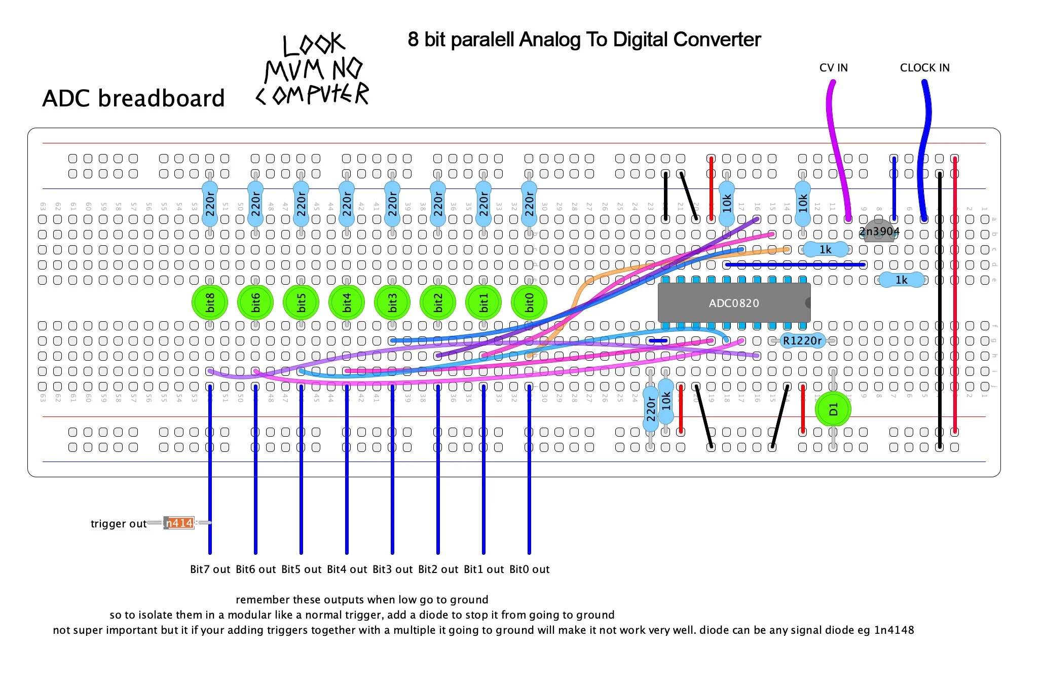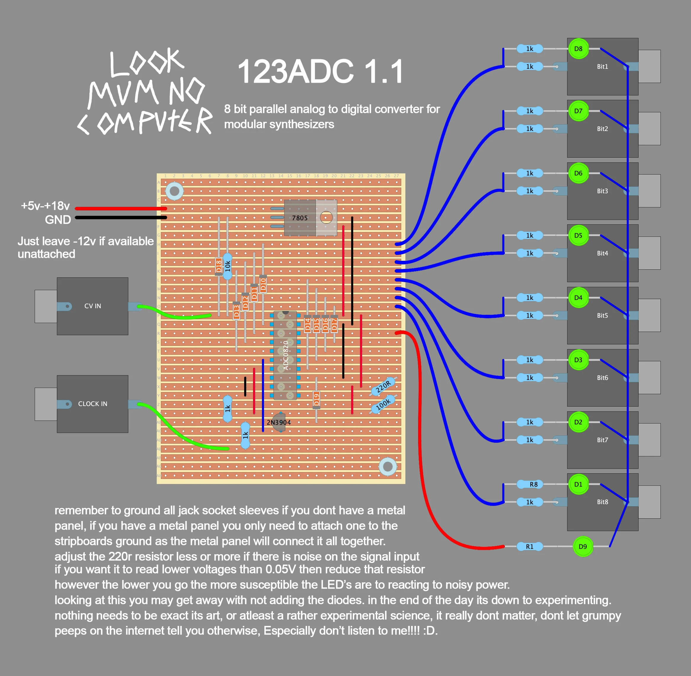 How to make a 123ADC 8 bit analog to digital converter in modular synth format using an ADC0820-N