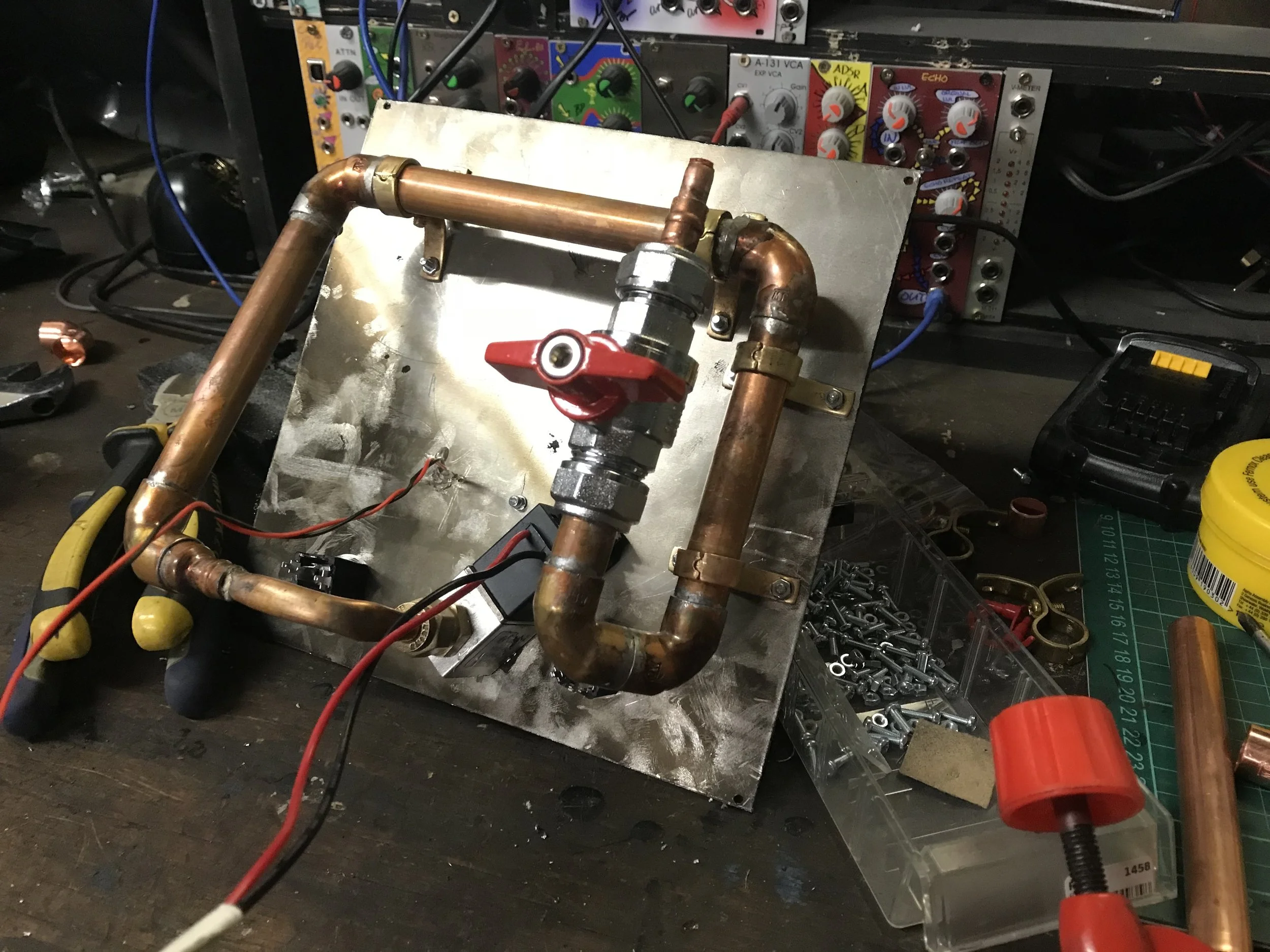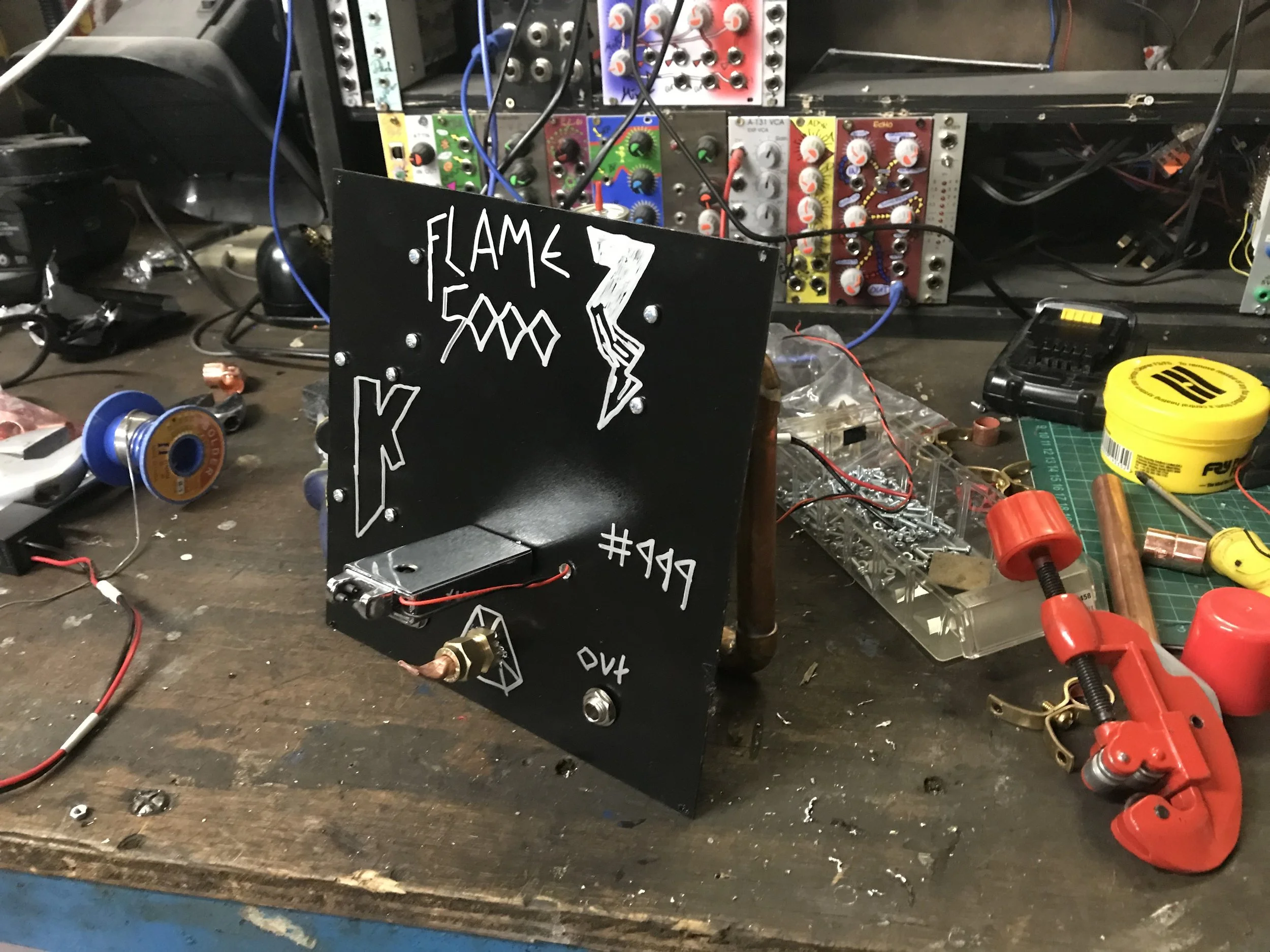 built with an arduino, some copper pipe, a solenoid and a couple of relays! and runs off lighter fluid!